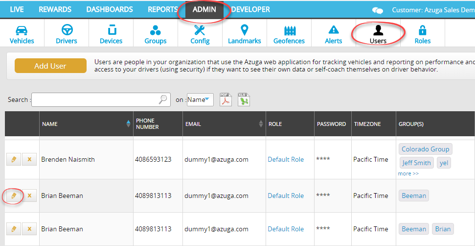 2. Navigate to the Users page, under the Admin tab.