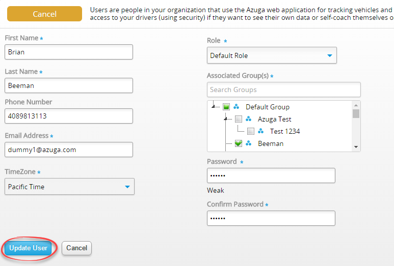 5. Click Update User.