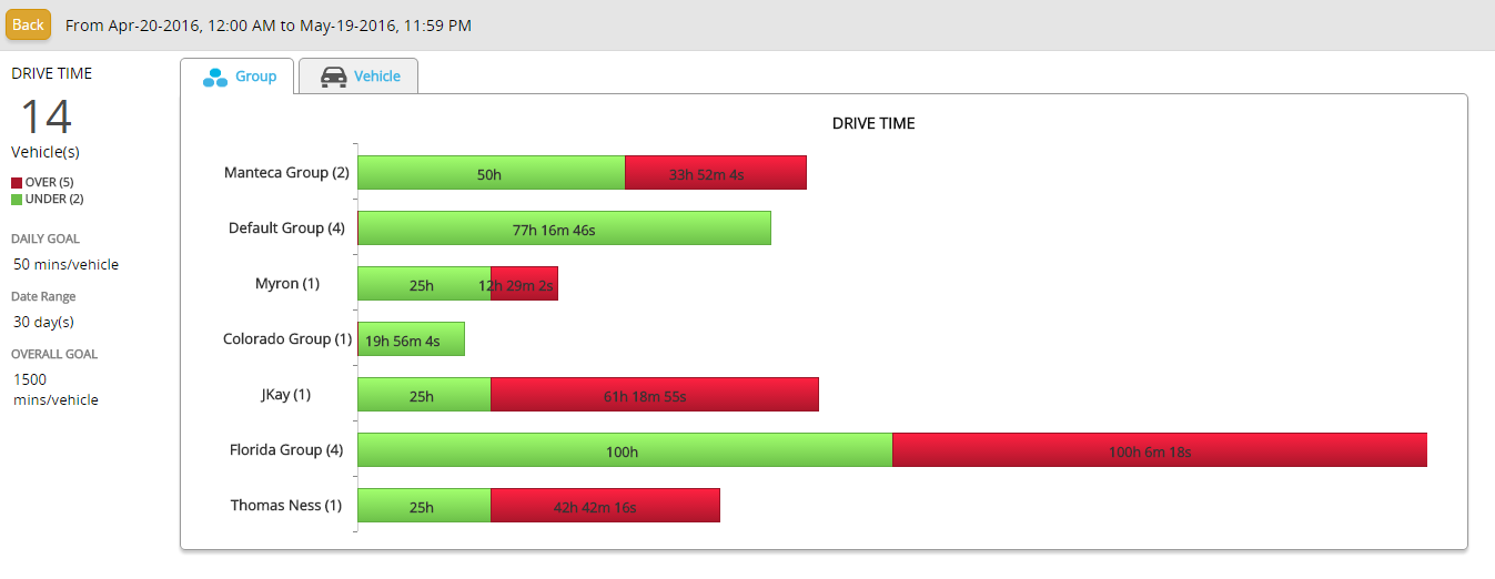 Click on a bar corresponding to a vehicle, to get the fleet detailed report of that vehicle.