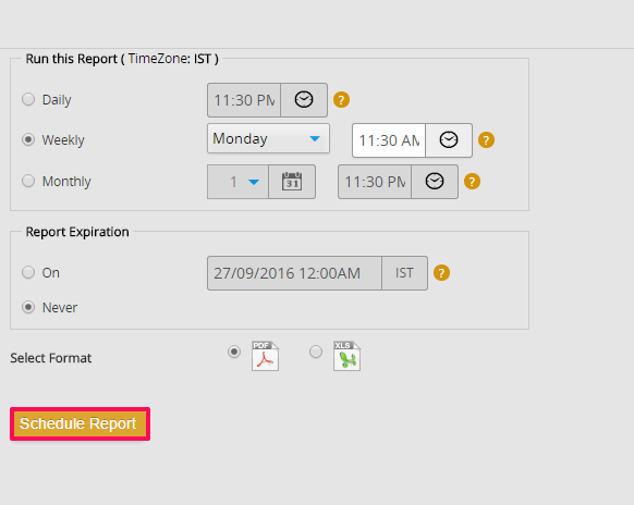 - Select On, if you wish to stop receiving this report after a specific period (mention the timestamp using the date picker).