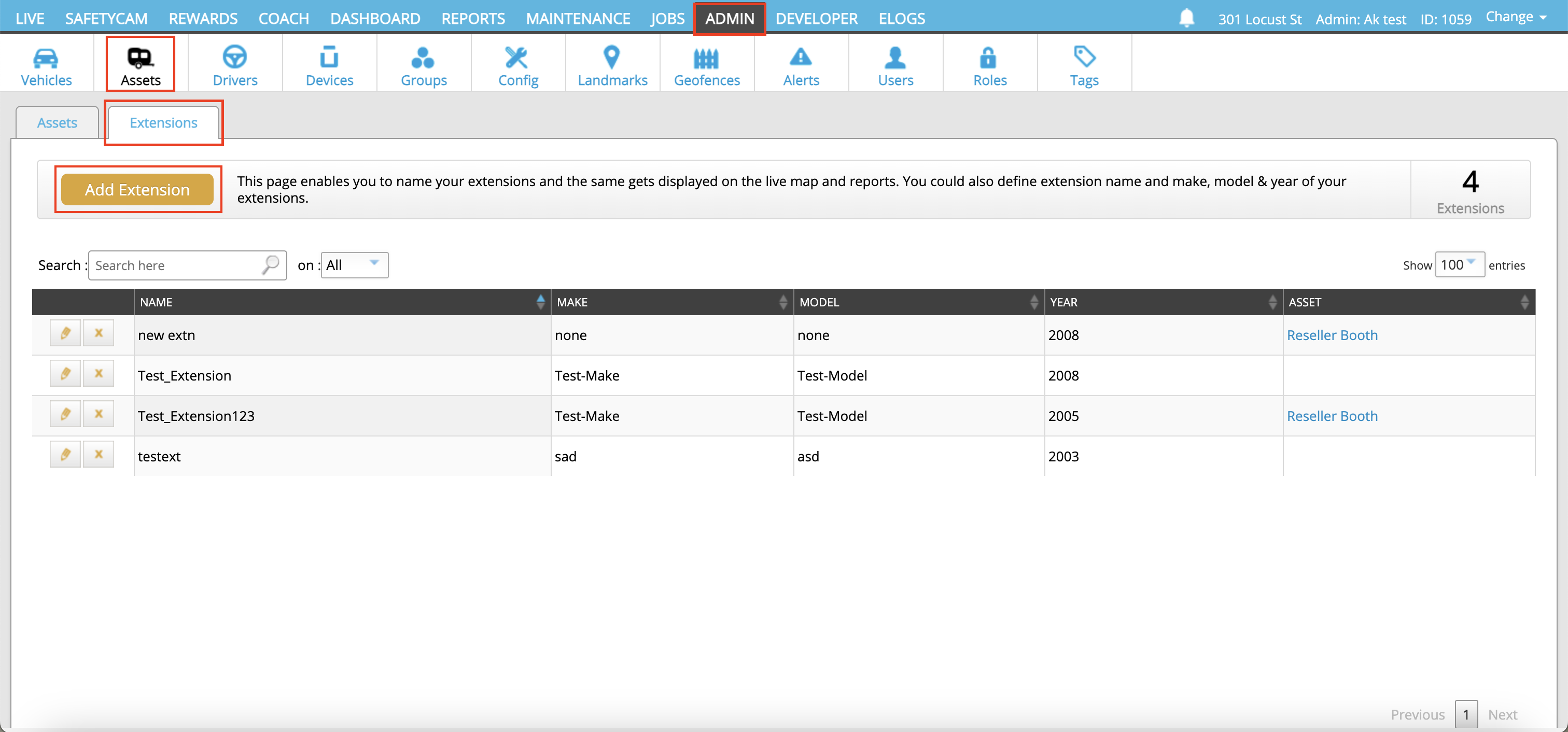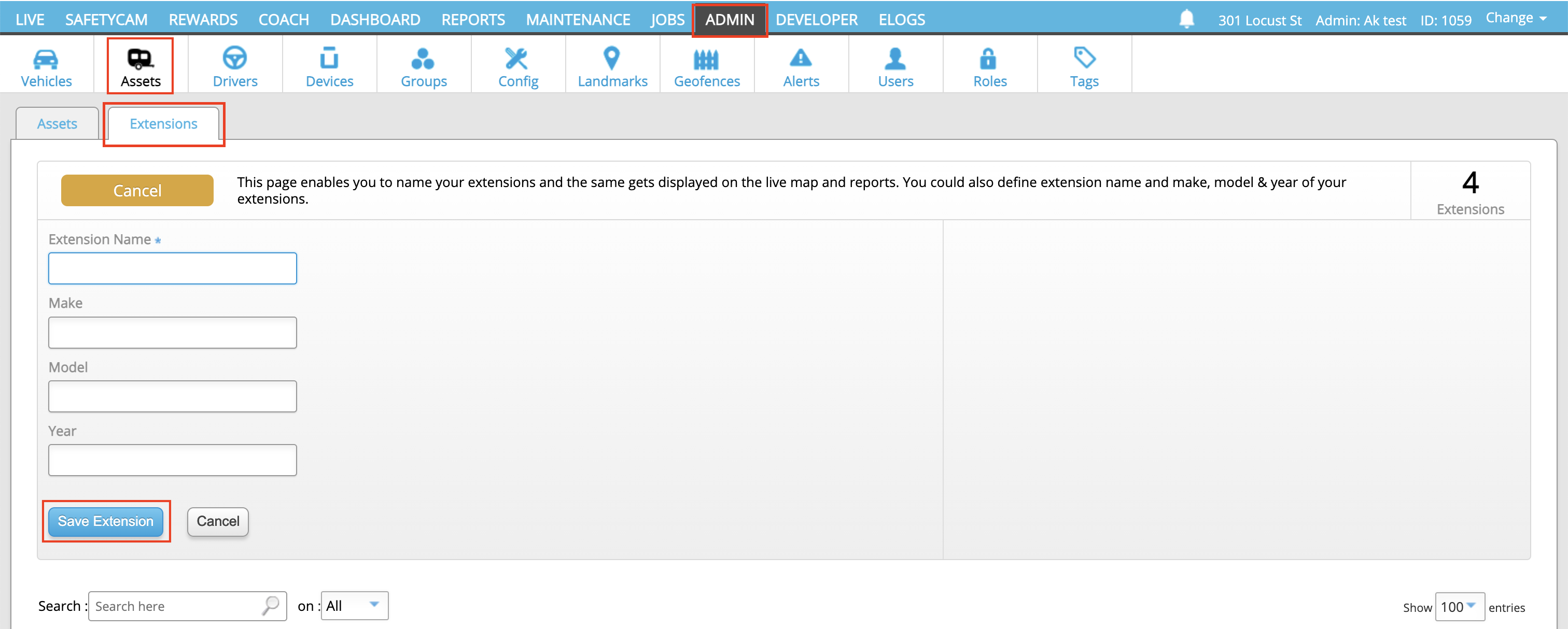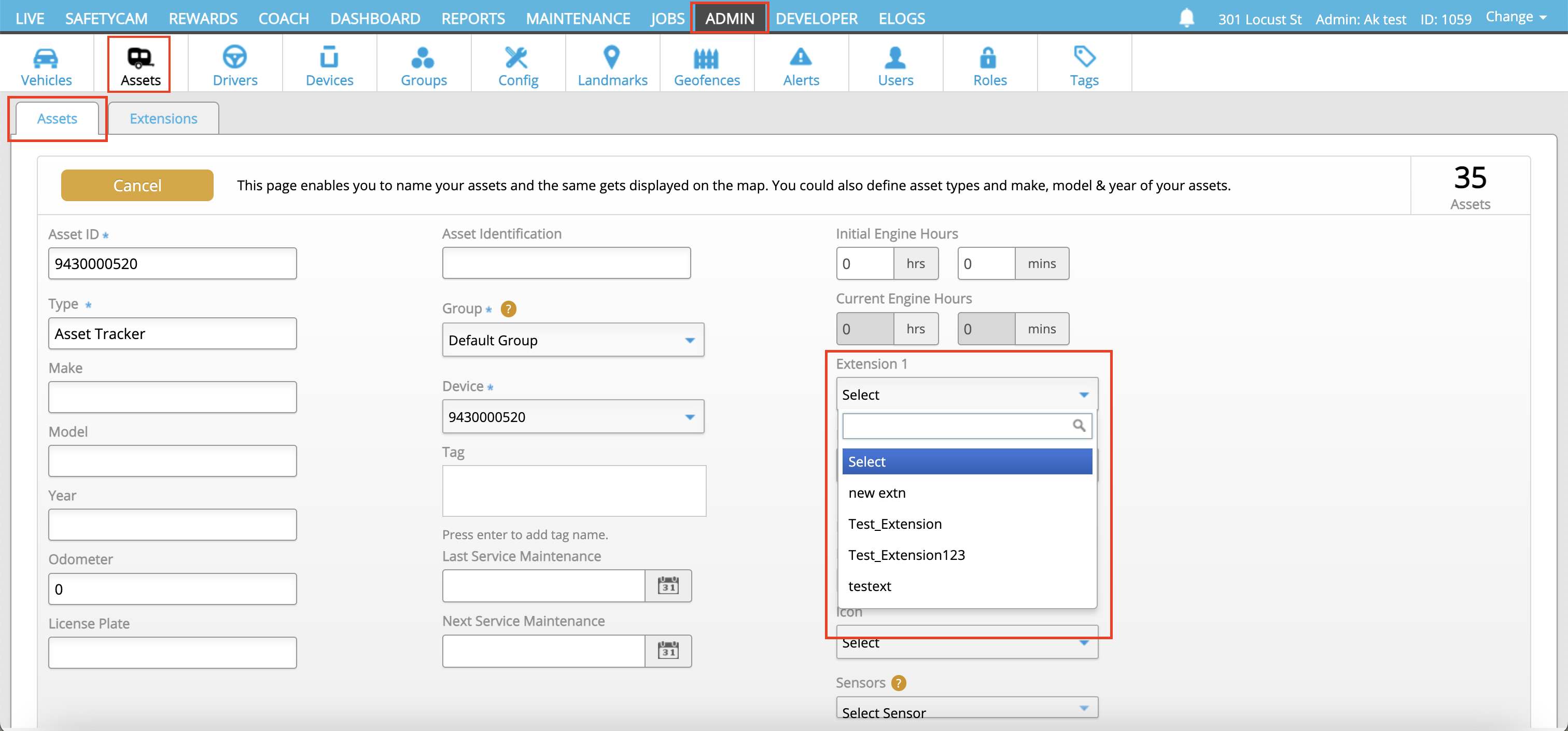 Once you save the asset and extension details, on any activity of engine hours from asset or usage of the extension will be displayed on live maps as well as on Asset Utilization report.