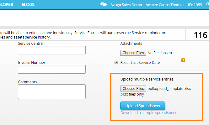 8. Upload this sheet back to the Azuga app. (Click Choose File and select this spreadsheet using the file chooser.)